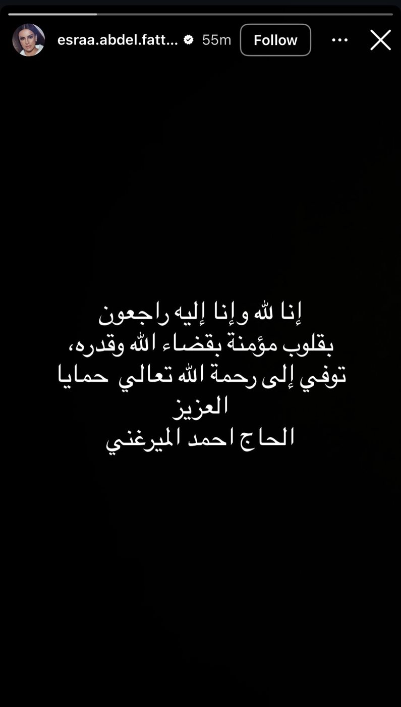 وكتبت إسراء عبد الفتاح عبر خاصية “الاستوري” على حسابها بموقع “إنستجرام”: “إنا لله وإنا إليه راجعون بقلوب مؤمنة توفي إلى رحمة الله تعالى حمايا العزيز الحاج أحمد الميرغني” دون الكشف عن تفاصيل إضافية بشأن موعد الجنازة أو العزاء.