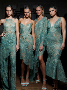 رأينا أيضًا الدانتيل الأسود على القمصان والبنطلونات والفساتين، واهتم كريستيان سيريانو بتنوع مقاسات التصميمات حتى تناسب جميع الأجسام.