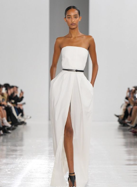 وكان للفساتين نصيب أيضًا من تصميمات المجموعة، فوجدنا الفساتين ذات الأكمام الطويلة والمكشوفة عند الساق والخصر لتبرز أنوثة المرأة، والفساتين دون الأكتاف، وغيرها من التصميمات المميزة بأكمام منتفخة، وقد جمعنا لك مجموعة من الصور لتتعرفي على المجموعة وتستلهمي منها ما يناسب أسلوبك.